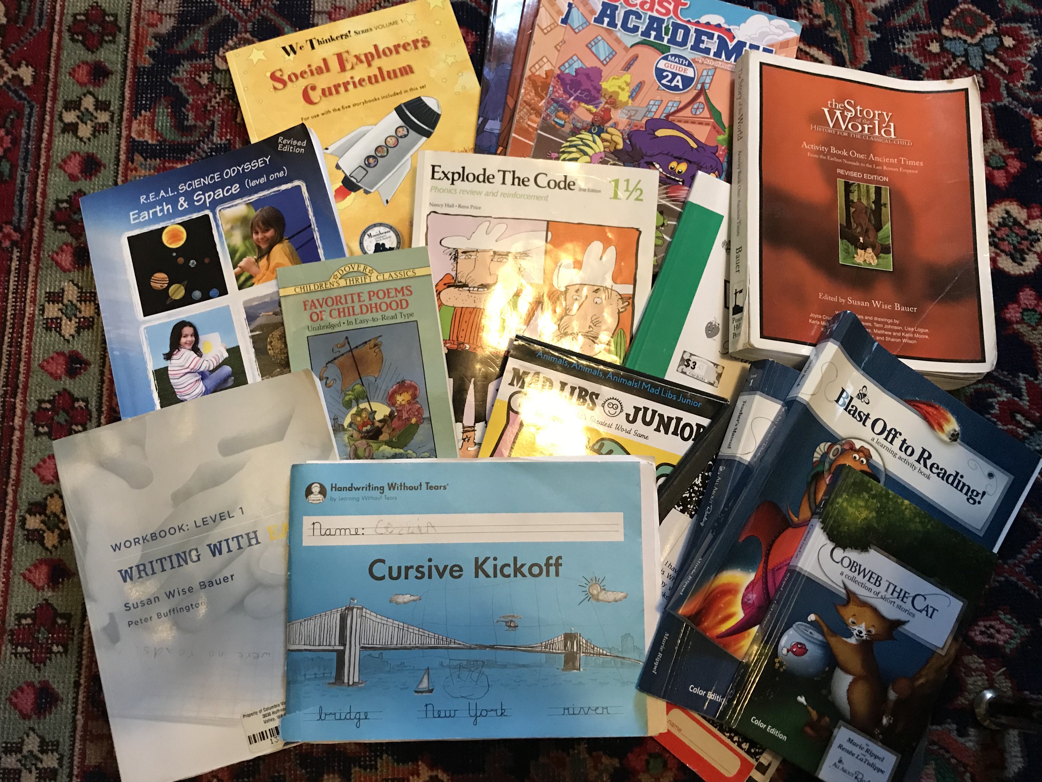 We start to get the homeschool room together and gather our curriculum and materials.