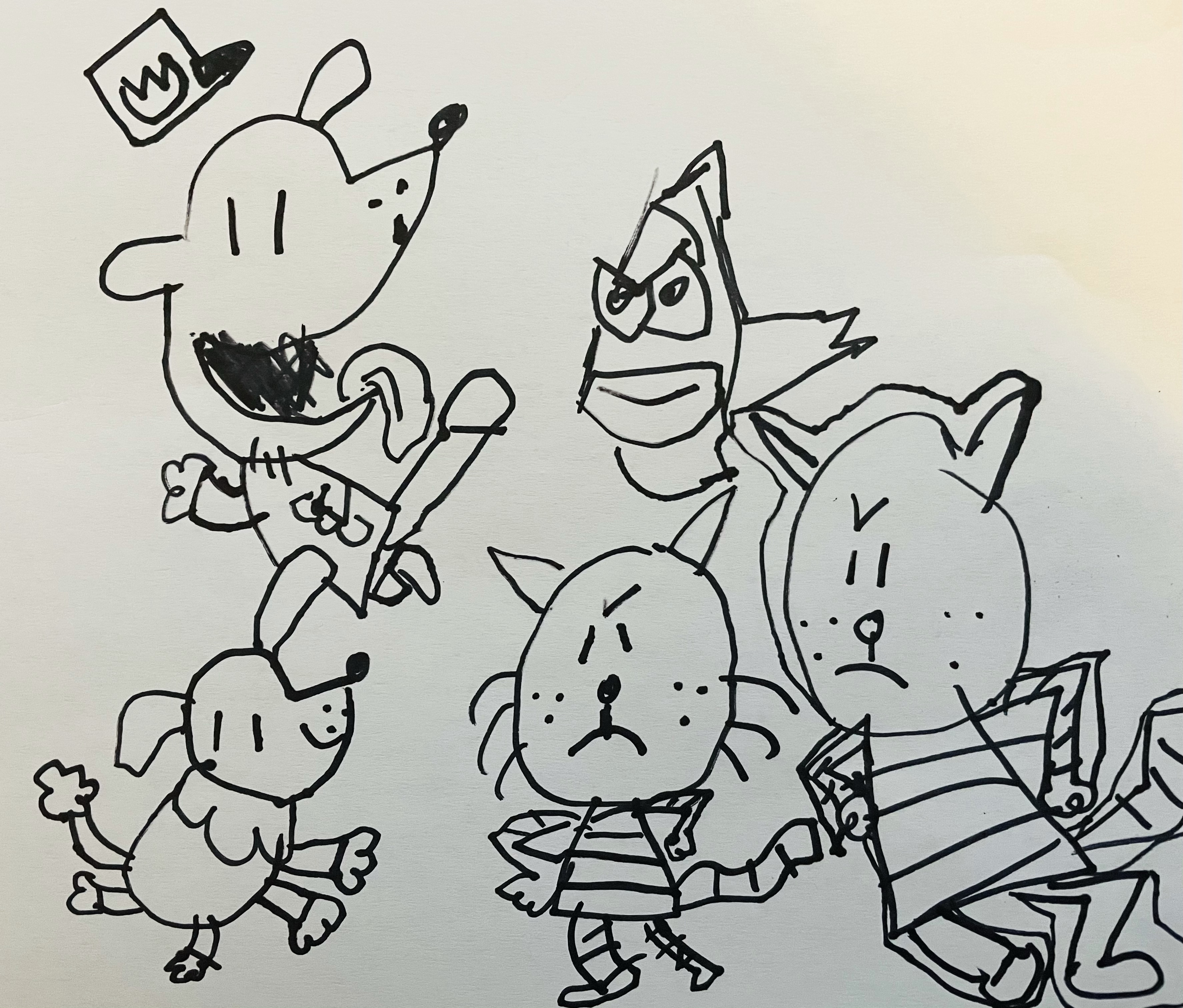 - Painting with Stickers, Drawing from Dogman comics, continue working on the city skyline.