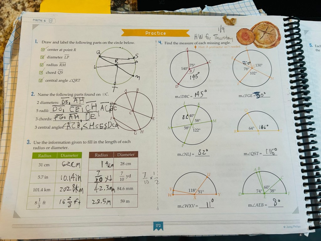 - Start TGTB Math Level 6; Lesson#41; Circles and Semi-Circles.